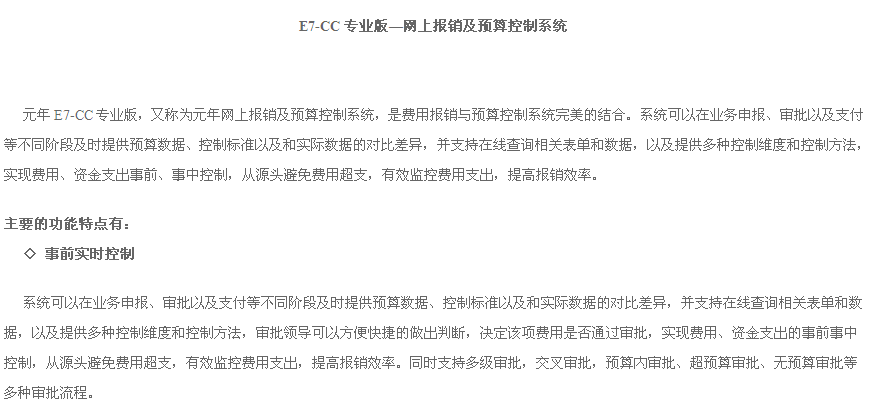 E7-CC 專(zhuān)業(yè)版—網(wǎng)上報(bào)銷(xiāo)及預(yù)算控制系統(tǒng)