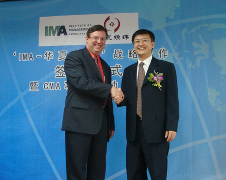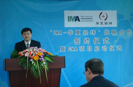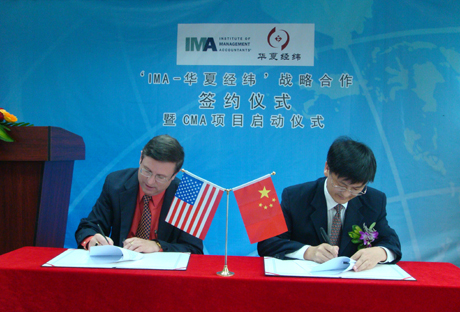為了推動管理會計在中國的發(fā)展,搭建中國管理會計人才的國際培養(yǎng)平臺,2009年9月13日,華夏經(jīng)緯財務(wù)咨詢(廈門)有限公司與美國管理會計師協(xié)會IMA在廈門市廈禾路富興大廈B幢8樓華夏經(jīng)緯高級培訓(xùn)室舉行隆重的項目合作簽約儀式。華夏經(jīng)緯財務(wù)咨詢(廈門)有限公司正式成為IMA在中國第五家、福建地區(qū)首家戰(zhàn)略合作伙伴。雙方戰(zhàn)略合作協(xié)議的簽訂,標(biāo)志著華夏經(jīng)緯CMA培訓(xùn)項目正式啟動。
