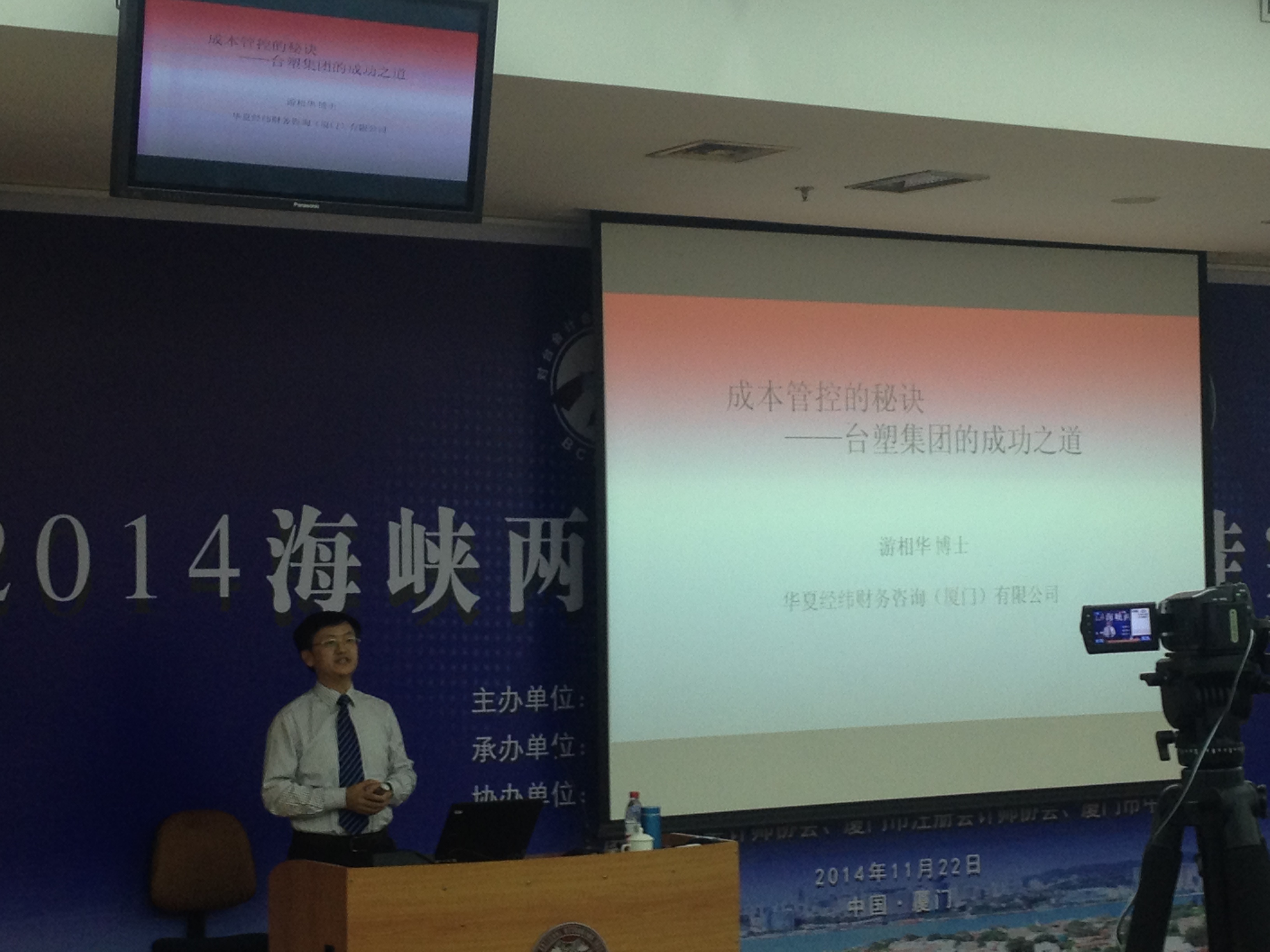 2014年11月22日,由對臺會計合作與交流基地主辦的“2014海峽兩岸管理會計最佳實(shí)踐論壇”在廈門國家會計學(xué)院教學(xué)樓104報告廳順利舉行。論壇邀請了財政部、學(xué)術(shù)界、企業(yè)界的嘉賓分別做專題演講,我司董事長游相華博士應(yīng)邀做“成本管控的秘訣—臺塑集團(tuán)的成功之道”的專題演講。