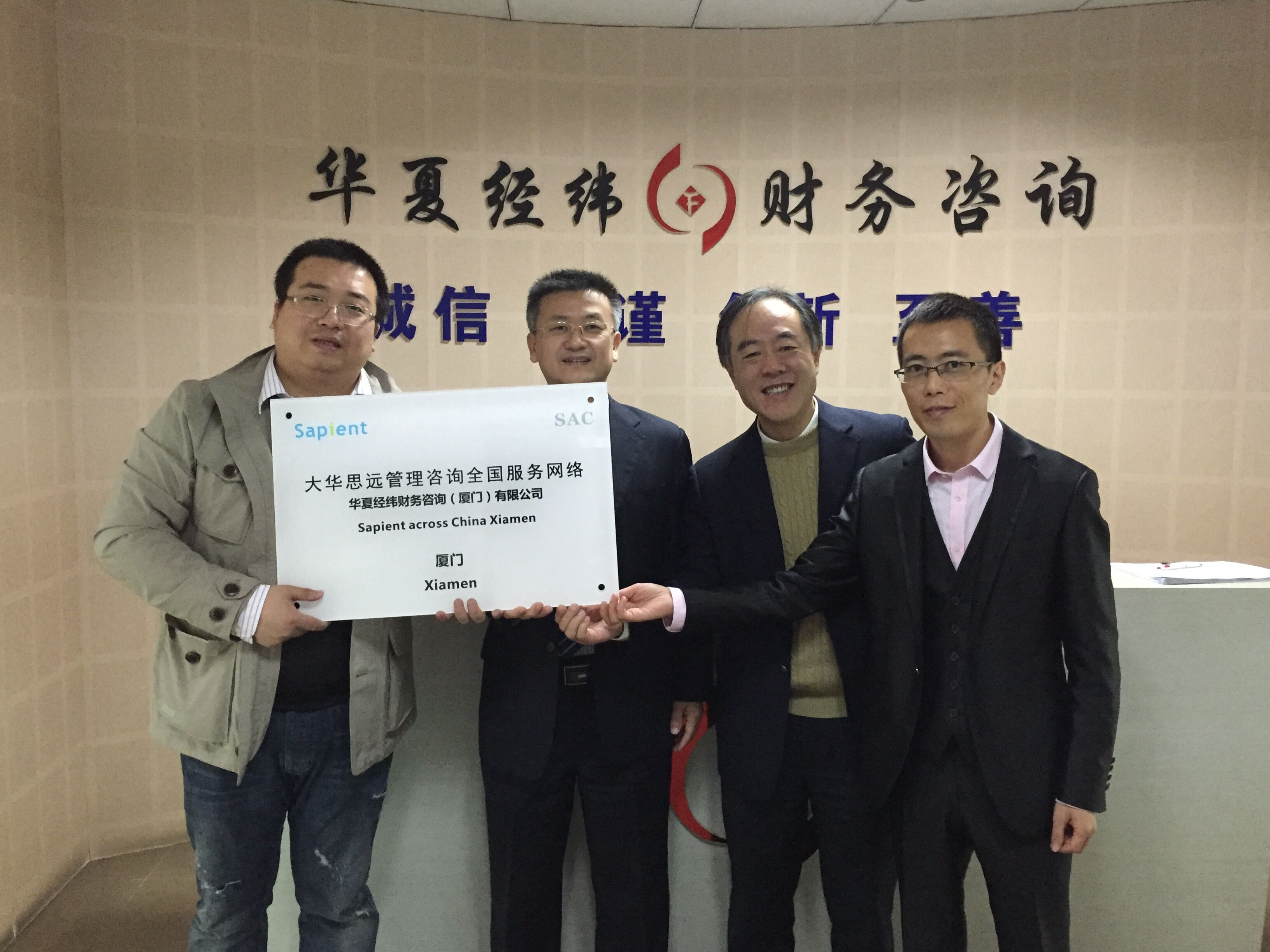 2016年1月6日上午,華夏經(jīng)緯財(cái)務(wù)咨詢(廈門)有限公司與大華思遠(yuǎn)(北京)管理咨詢有限公司戰(zhàn)略合作簽約儀式暨授牌在公司舉行。此次簽約,標(biāo)志著雙方建立了穩(wěn)固的戰(zhàn)略合作伙伴關(guān)系,為華夏經(jīng)緯財(cái)務(wù)咨詢(廈門)有限公司在全國(guó)性戰(zhàn)略布局持續(xù)、健康、快速發(fā)展奠定了良好的基礎(chǔ)。
